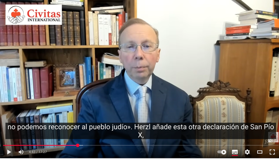 En su vídeo semanal, Alain Escada, presidente de Civitas International, desea aclarar cuál debe ser la postura de los católicos sobre el sionismo, Palestina y el genocidio que se está produciendo en Gaza. Alain Escada basa su argumentación en las palabras del papa San Pío X a Theodor Herzl, fundador del movimiento sionista. También evoca a Pío XII, el anticristianismo israelí que sufren los cristianos de Oriente, recuerda que existen palestinos cristianos, martirizados como los demás por el ejército israelí, y termina con la noción de «gran sustitución», que debe analizarse de la misma manera en Francia que en Palestina.